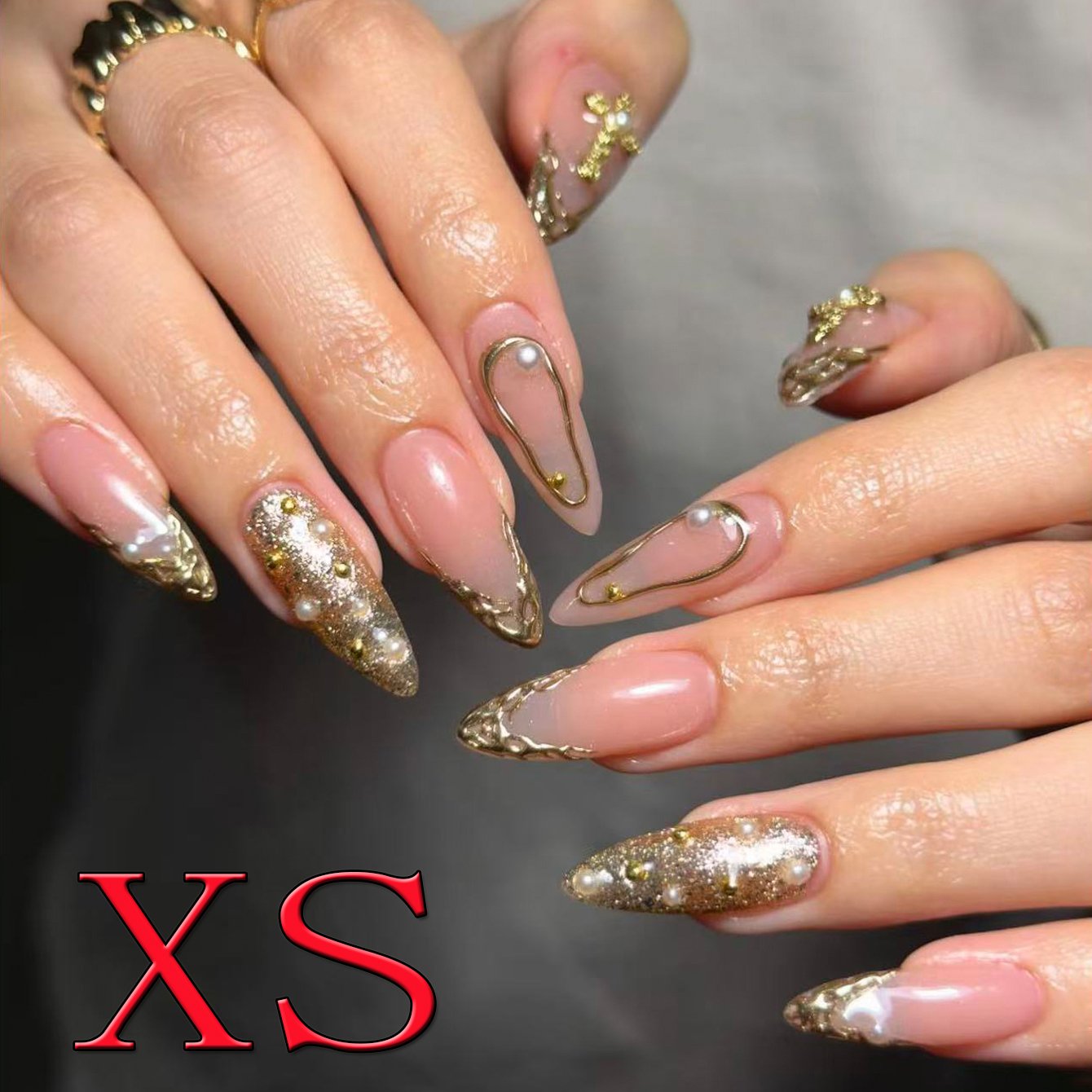 10pcs diamond french pointed nail short square nail nude fake nail with gold glitter diamond nail leopard print fake nail